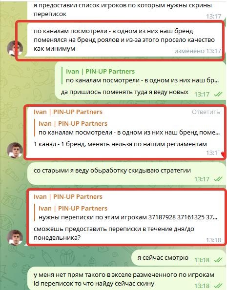 Менеджер очень расстроился просмотрев каналы, сказал нехорошо менять бренда в каналах. Что у них есть регламент 1 канал 1 бренд Но забыл упомянуть что на его бренде PIN-UP висят деньги уже месяц без выплаты и без какой либо определенности что будет и будет ли выплата вообще. Важно было продолжать гнать трафик на их партнерку даже когда аккаунт уже заблокирован!